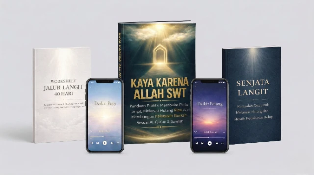 Kamu akan mendapatkan panduan lengkap “Kaya Karena Allah SWT” dalam format digital, yang membahas: